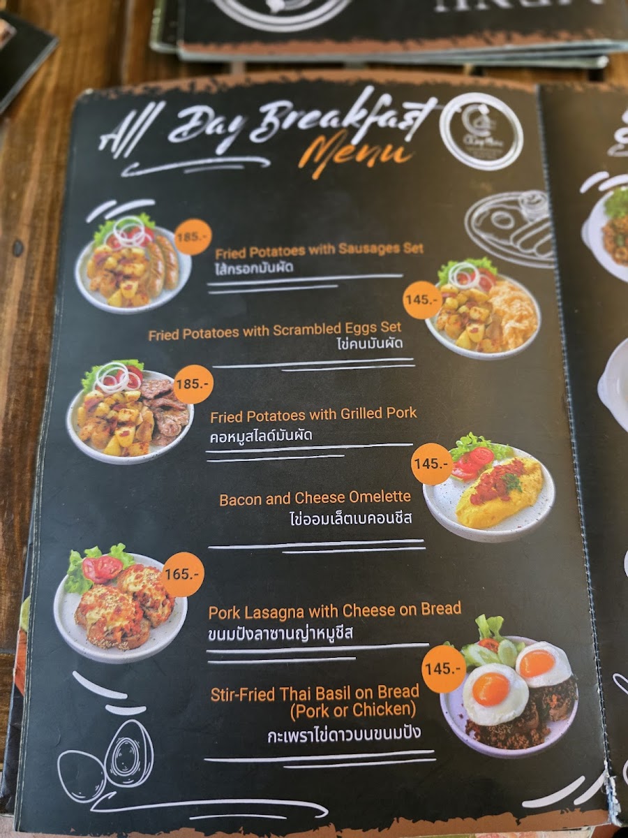 The menu is well-suited for casual dining and can accommodate quick orders or more relaxed meals. It offers a mix of European and Thai cuisine, reflecting a broad culinary range. Customers can expect consistent food and beverage options throughout the day with specific availability noted for certain categories like the steak menu in the afternoon and evening hours.
